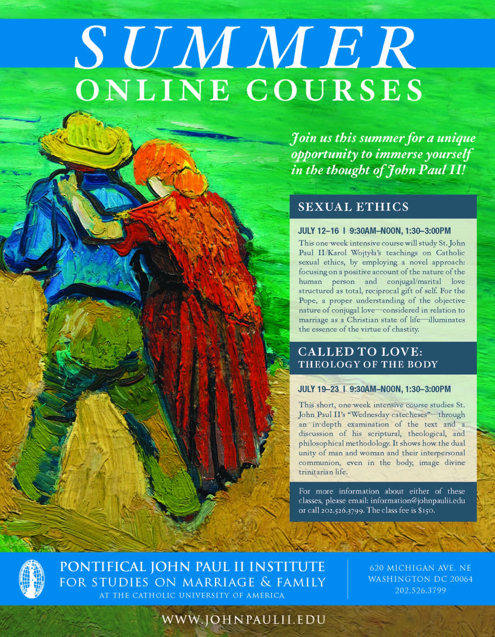 The Summer 2026 courses in the Institute’s ongoing Continuing Education Series will be “Called to Love: Theology of The Body” from July 13-17 and “Theology of the Laity” from July 20-24.